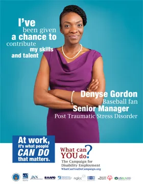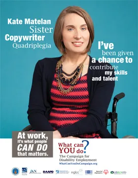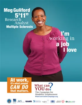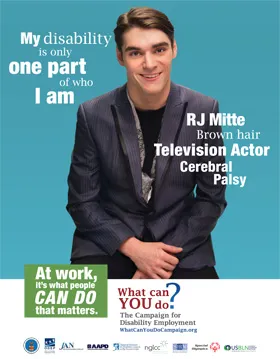 Display the Campaign for Disability Employment’s “Who I Am” Poster Series to show that when we look at someone, we don’t always see all of who they are. The cast members of the “Who I Am” PSA are the sum of their many life roles and not defined only by their disability.