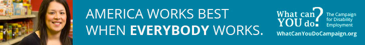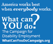 Do you manage a website, print publication or e-newsletter? Consider publishing a Campaign for Disability Employment (CDE) web or print advertisement to help us promote our important message. Select from the series of ads below, which offer downloadable, print-ready advertisements in a variety of styles and dimensions.