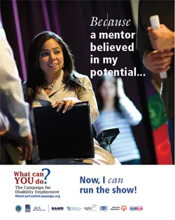 For young people with disabilities, relationships with caring adults with high expectations go a long way toward fostering independence, self-sufficiency and a fulfilling career. Display the Campaign for Disability Employment’s “Because” Poster Series to help spread the message that each of us has the power to inspire others to achieve success.
